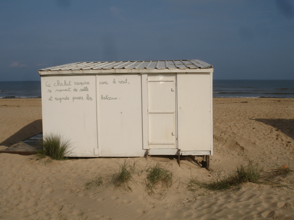 En Pas-de-Calais, sous le ciel opaque de la terre que j’ai nommée Opalie, les chalets de la plage de Blériot se meurent en silence malgré le hurlement de leurs planches.