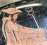 Chapeau, d’origine grecque, à larges bords arrondis, utilisé par les voyageurs et les laborieux pour s’abriter du soleil et de la pluie.
